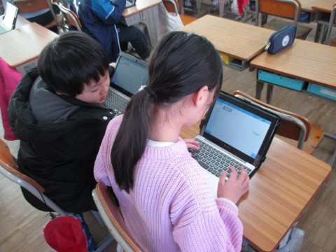 学活では,3学期の係を決めました。パソコンを使って,係カードを作っていました。