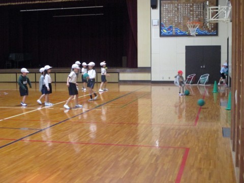 体育のめあては,「よく ねらって うとう」でした。的をねらってボールを蹴りました。命中したら大成功です。