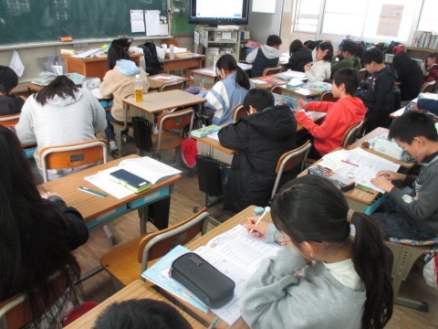 算数では,「数直線を使って等しい分数を見つけよう」の学習をしていました。練習問題も解いて,学習内容を確かめました。