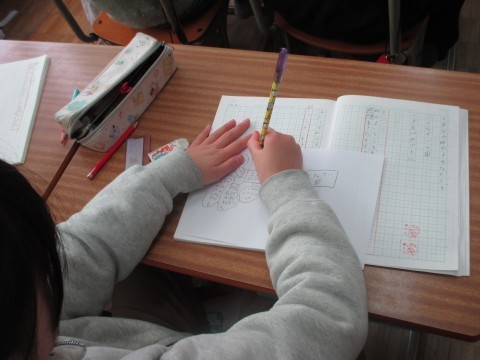 国語「わたしの町のよいところ」では,「しょうかいすることを決めよう」をめあてに,素材集めをしていました。