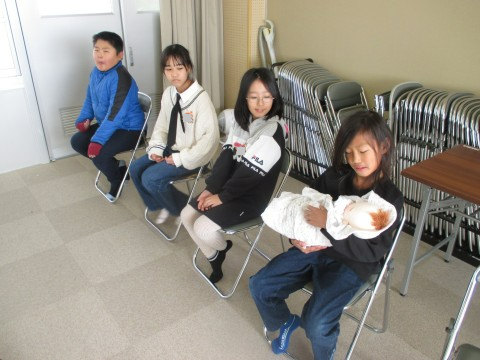 助産師さんに来ていただいて,いのちの授業を受けました。赤ちゃんが生まれるまでの様子や命の大切さについて,わかりやすく教えていただきました。また,赤ちゃんと同じ重さの人形を順番にだっこしました。「重い!」と言いながら,うれしそうにだっこしていました。