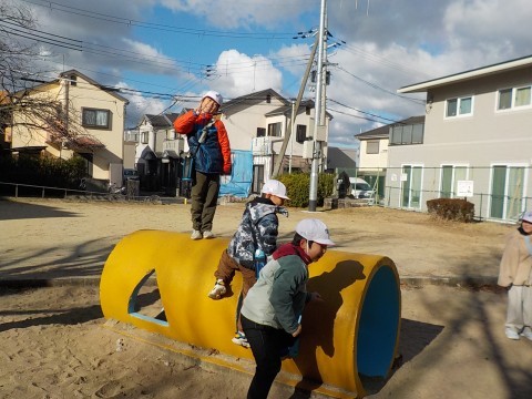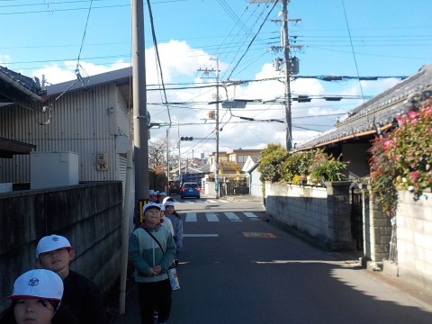2年生は,2回目の校区探検に行きました。途中,公園で遊んだり,地域にあるいろいろな施設を訪れたりしました。寒かったですが,今日もよく歩きました。