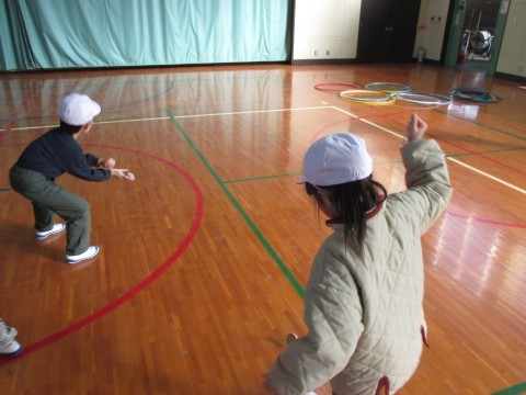 近くの保育園の園児さんを招いて,「1ねんせいに なったら たいけん」を行いました。グループに分かれていろいろな遊びをしたり,みんなでおにごっこをしたりしました。その後は,教室で,名前を書いたりランドセルをしょったりする体験をしてもらいました。1年生の案内で学校探検もしました。どの活動でも,1年生が年下の子どもたちに優しく接している姿が見られました。