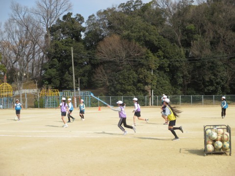 体育では,サッカーをしました。チームに分かれて,声を掛け合いながらボールを追いかけていました。