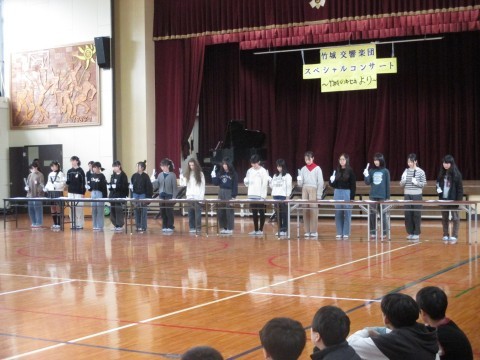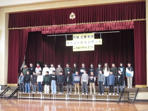 小学校で最後の参観に,「竹城交響楽団スペシャルコンサート」を行いました。歌やリコーダー奏,合奏など,積み重ねてきた練習の成果を出すことができました。