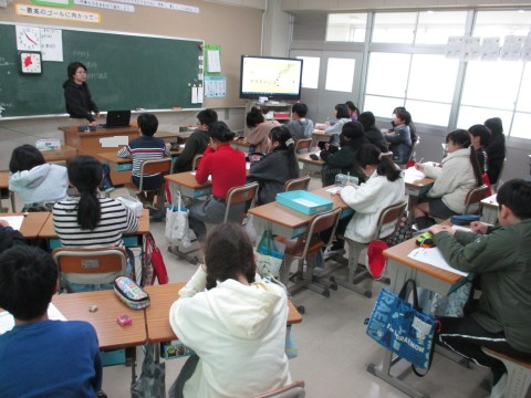 キャリア教育の一環で,ゲストティーチャーに来て頂きました。したいことを実現したり夢を叶えたりするにはどのようにすればよいかお話ししてくださいました。