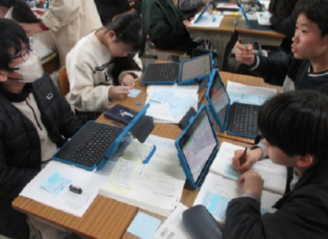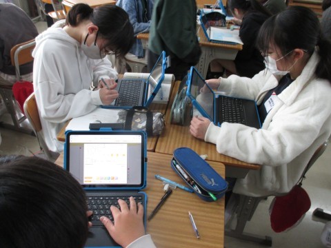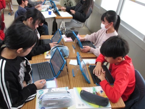 国語では,「大切にしたい言葉」の学習をしていました。自分が大切にしたい言葉について綴った文章を,班で読み合って感想を伝え合いました。