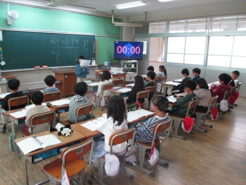 国語では,「見たこと かんじたこと」の学習で書いた詩を一人ずつ発表していました。友だちの詩を聞いて気に入ったところをノートに書きました。