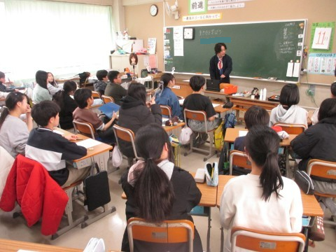キャリア教育の一環で,ゲストティーチャーに来て頂きました。実演を交えて,お仕事についてお話をしてくださいました。