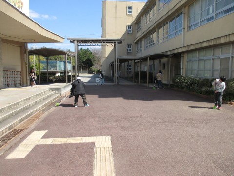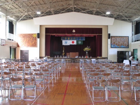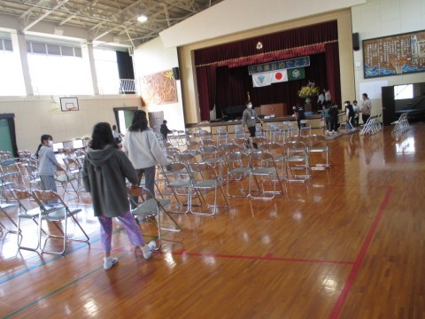 4年生と5年生が,明日の卒業式のために,掃除や準備をしてくれました。とてもきれいに整った会場で,先生たちから労いの言葉がありました。