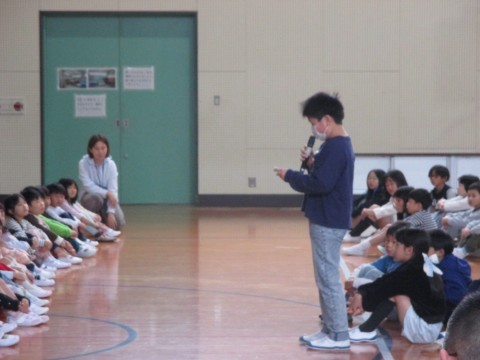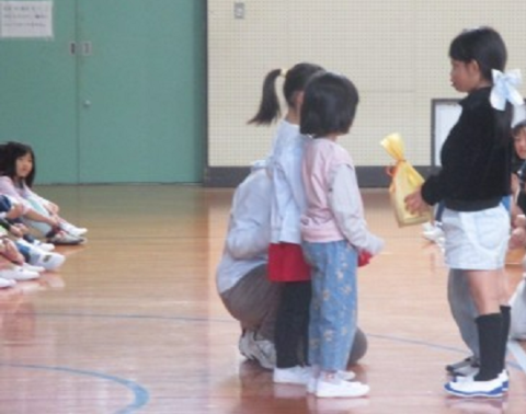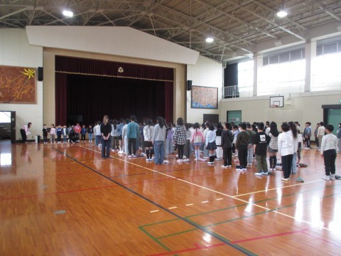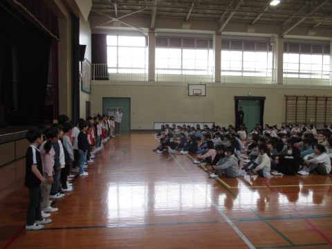 対面式を行いました。2~6年生が,1年生を拍手で迎えました。児童会からの歓迎の言葉,2年生からのアサガオの種の贈り物のあと,1年生みんなから挨拶がありました。