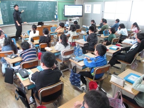 理科の時間の様子です。児童用パソコンを利用した学習の方法について話を聞いていました。