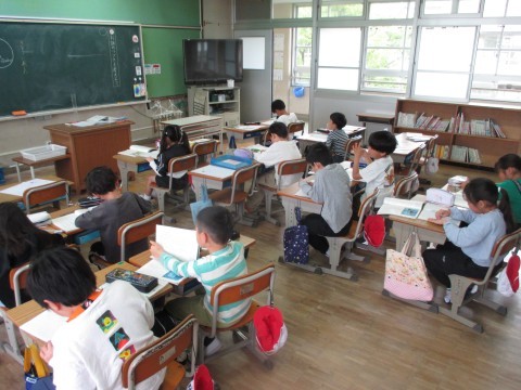 国語の時間の様子です。物語を読んで,続きの話を自分で考え,ノートに書いていました。