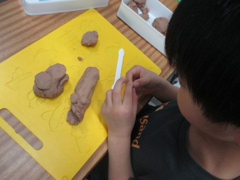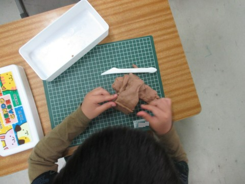 粘土を使って造形活動をしていました。伸ばしたり丸めたりしながら,楽しそうに作っていました。