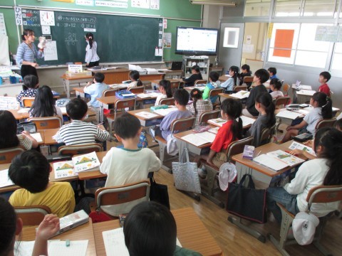 算数の時間の様子です。色々な筆算の解き方をみんなで確認していました。