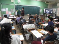 家庭科の授業でミシン縫いにチャレンジする5年生です。