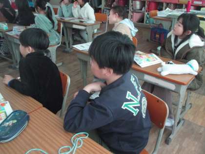 外国語活動で集中している3年生の子どもたちです。数字も英語で上手に発音できていましたよ。