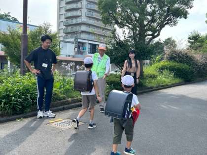 見守り隊の皆様もいつもありがとうございます。また今日は堺市教育委員会からも登校指導にお越しいただきました。本校教員も通学路の要所に立ち指導しました。