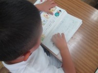 国語のテストをしていました。今日は、聞き取り問題です。集中してとりくんでいました...