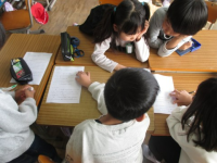 国語は,「かん字のひろば」の学習でした。先生の出す文作りのミッションに,班で協力...