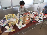 わりばしでっぽうやこまなど,おもちゃ作りをしていました。年下の子どもたちに,これ...