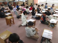 音楽では,リコーダーを吹いていました。二つのグループに分かれて,追いかけっこをし...