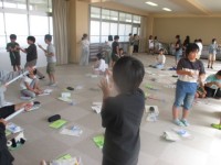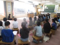 5年生と4年生が合同で、連合音楽会で発表する歌の練習をしていました。歌う前の発声...