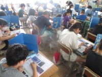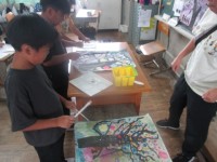 夏の風景を絵に表していました。すいかや朝顔、ひまわりなど、夏を表すものはたくさん...