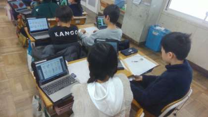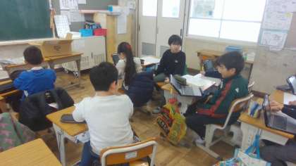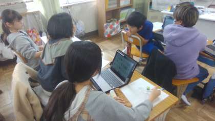4年 図工「ほって表す不思議な花」 公開日 2025/02/12 更新日 2025/02/12 4年生 彫刻刀の扱いに慣れ、彫り方や刷り方を工夫して、表したい花を木版画で表現する学習です。今日は、友達と相談したり、タブレットで検索したりしながら下描きを行っています。