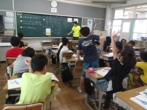 分数のわり算の学習をしました。2÷3を分数で表すとどうなるかを、わかったつもりで終わるのではなく、どうしてそうなるのかを数直線、図や言葉でしっかりと説明できるようにと頑張っていました。