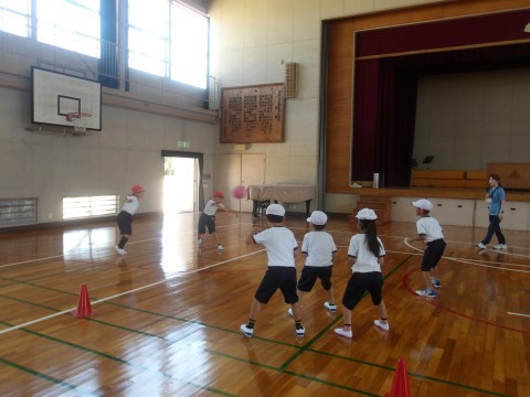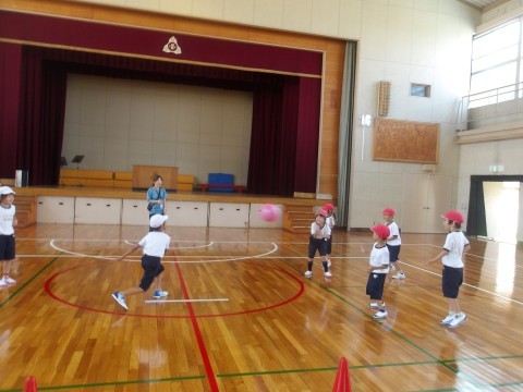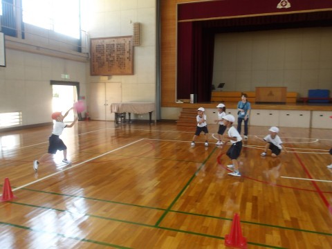ドッジボールの練習をしていました。コートの中を上手に走り回っていました。