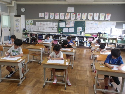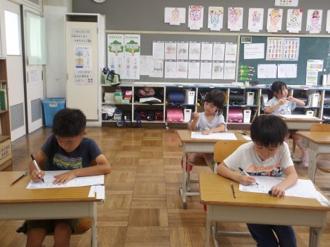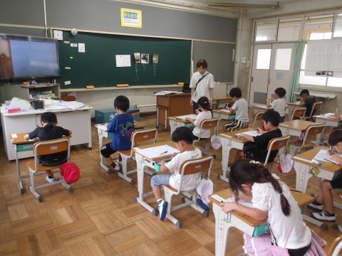 書き方プリントをしました。子どもたちからは、「書き方プリントやりたかった!」という声が。やる気いっぱいの1年生です。