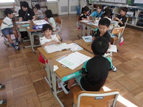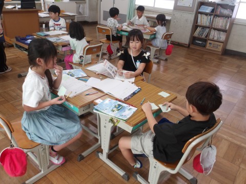 うみのかくれんぼの学習です。付せんに感想を書いて、グループで感想を伝え合いました。
