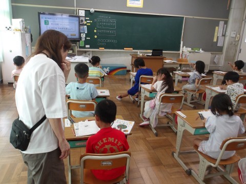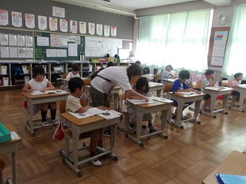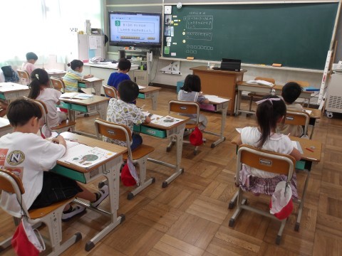 くりあがるのある足し算の学習をしています。図や説明をしっかりとノートに書いて考えていました。