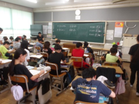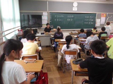 分数の足し算,引き算の復習をしていました。小数を分数に直したり,最後に約分をしたりと計算が複雑ですが,最後まで頑張っていました。