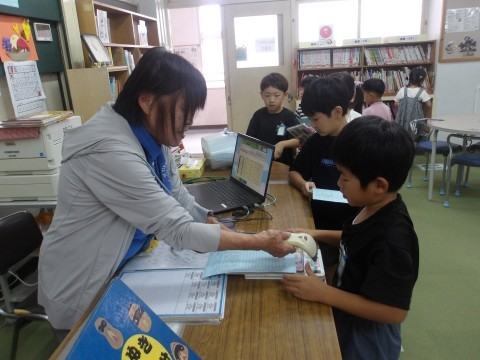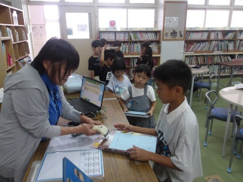 読書ノートに感想を記入して提出し,借りた本を返した後に,新しく本を借りるという一連の流れがとてもスムーズにできるようになっています。