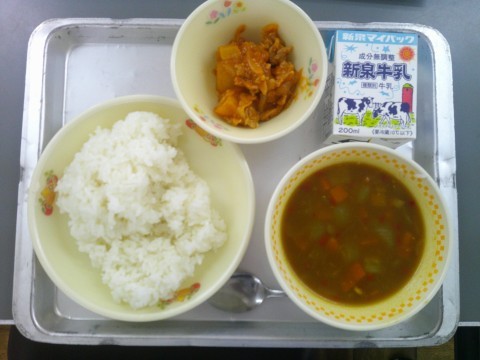 今日の献立は,ご飯,牛乳,カレモア,プアアのポリネシアンソースです。
