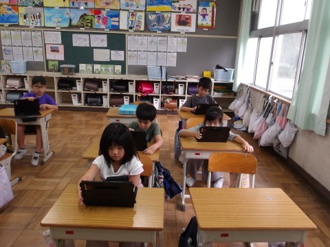 ドリルパークで算数の復習に取り組んでいました。自分のペースで進められるところがいいですね。