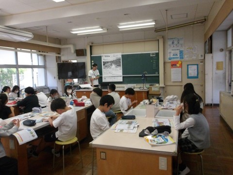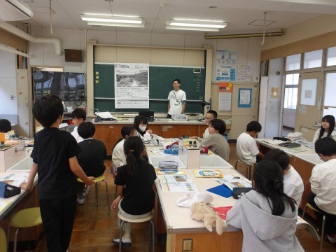 季節の変化について考えました。秋になり,木々の様子や生き物の様子がどうなったか,意見を出し合った後,実際に校庭に出て観察しました。