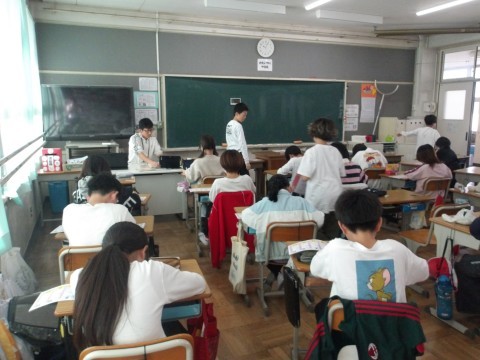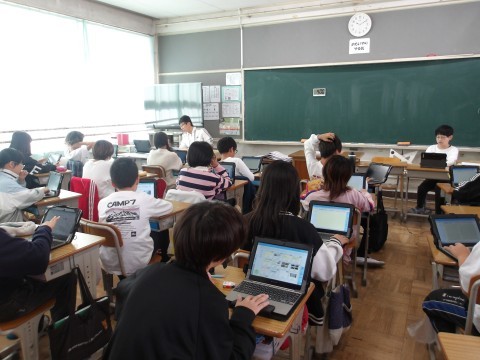 新出漢字の練習をした後,タブレットを用意し,「環境を守るための工夫」について,意見文を書いていました。