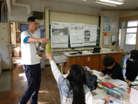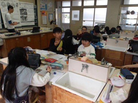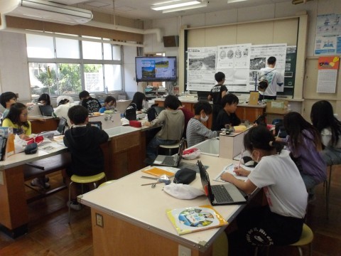 前回秋の自然について調査したことをまとめました。へちまの実をさわって「軽い!」と驚いていました。