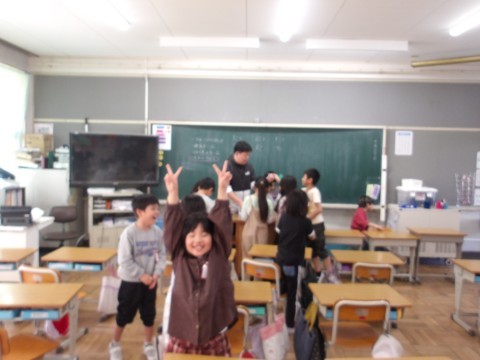 転校するお友達のお別れ会をしました。宝探しゲームは先生対子どもたちで対決し,子どもチームの勝利!楽しい思い出ができましたね。