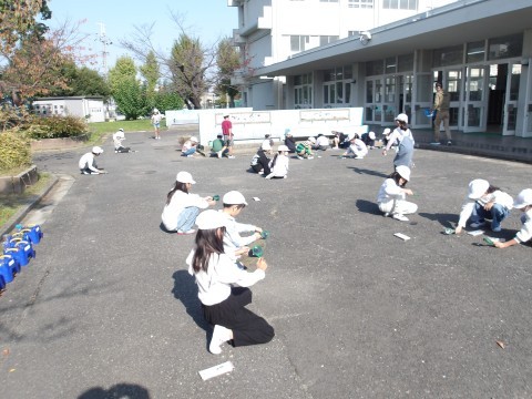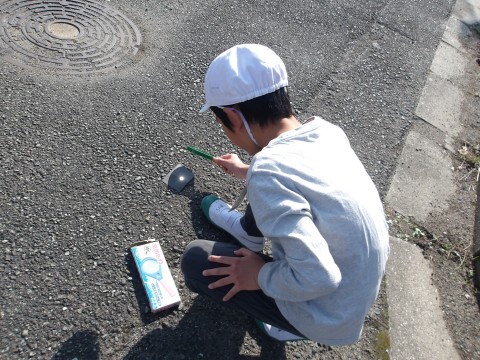 黒い紙に虫メガネの光を集めるとどうなるか,実験をしていました。
