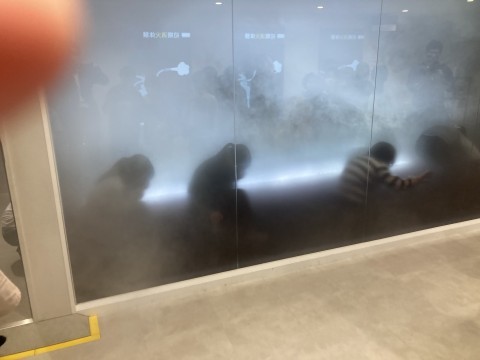 煙の中を避難する体験、119番通報体験、震災の町並みの見学など、バリエーションに富んだ体験をさせていただきました。