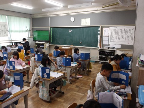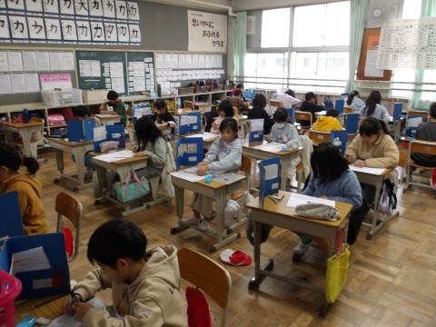 コンパスの使い方を特訓した成果を見せようと,頑張ってテストに取り組んでいました。