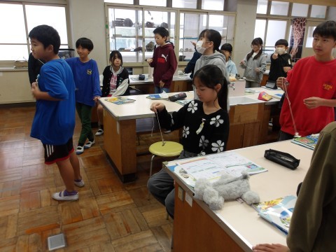 音楽のリズムに合わせてふりこを動かすために,どれくらいの長さがいいのか実験をしました。