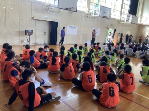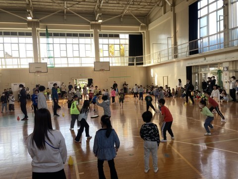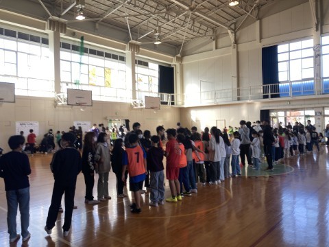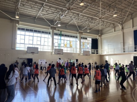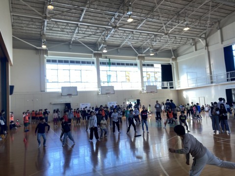 宮中校区の竹城台東小、竹城台小、宮山台小の子どもたちが集まり、ドッヂビーを楽しみました。別の小学校と同じチームになり、協力してチームワークを深めました。(写真のビブスを着ている児童が本校の児童です。)企画、進行、サポートしていただいたPTAの皆様、子どもたちの笑顔のためにありがとうございました。