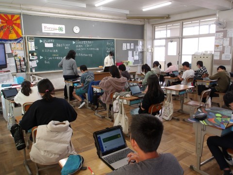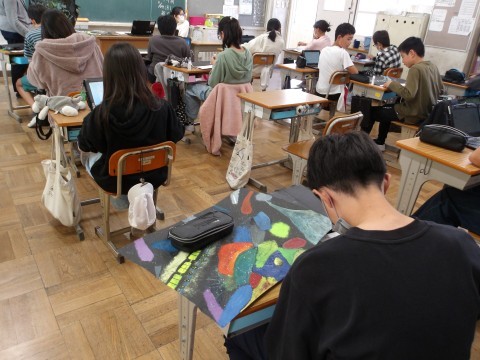 自分の図画作品を見つめながら,どんなところに心を込めて描いたのか等を文章にまとめていました。