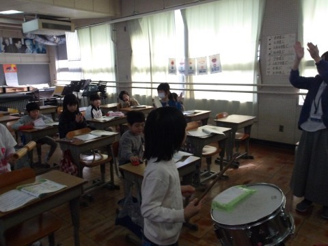 小だいこやすず,ウッドブロックなど7種類の打楽器を使って簡単な演奏を楽しみました。