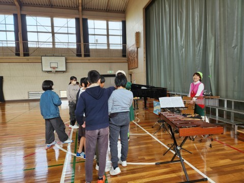 休憩時間にもパーカッションについて色々教えていただいていました。